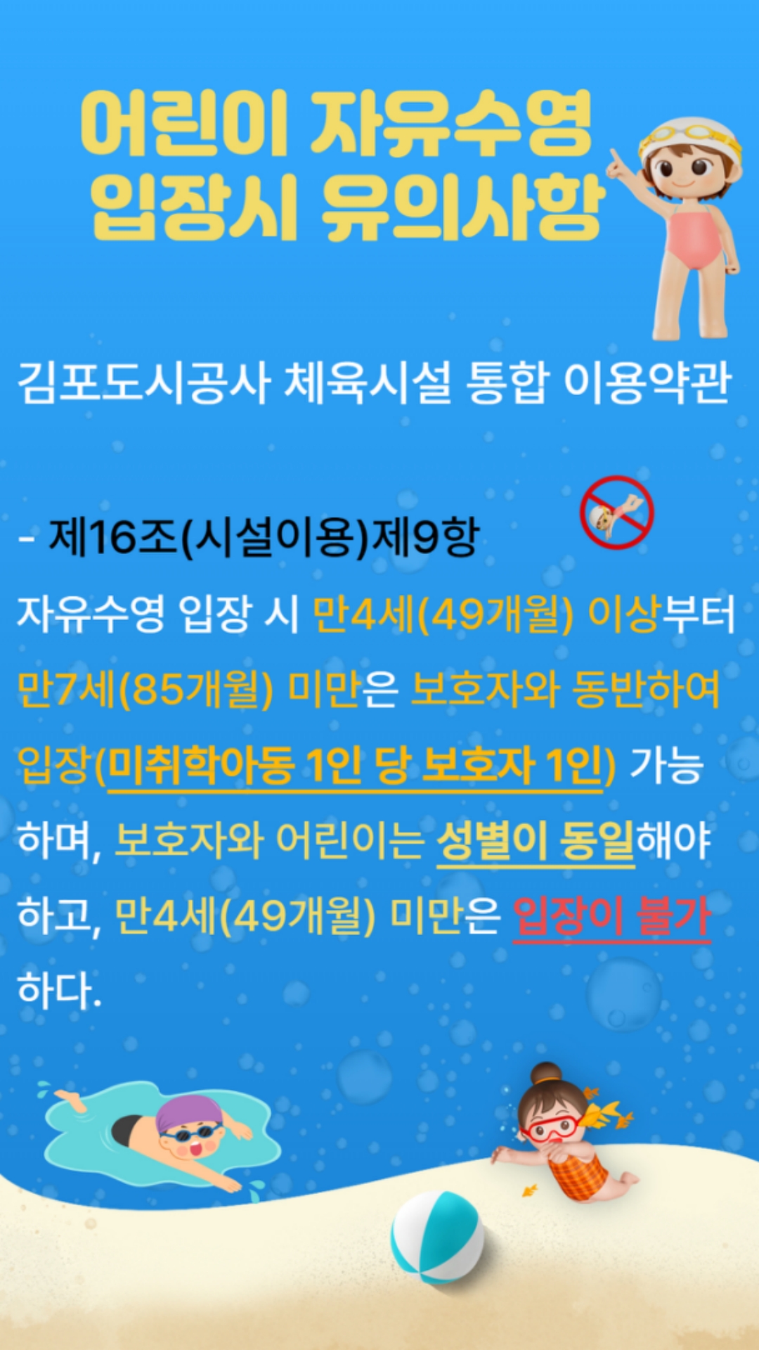 어린이 자유수영 입장시 유의사항(체육시설 통합 이용약관)